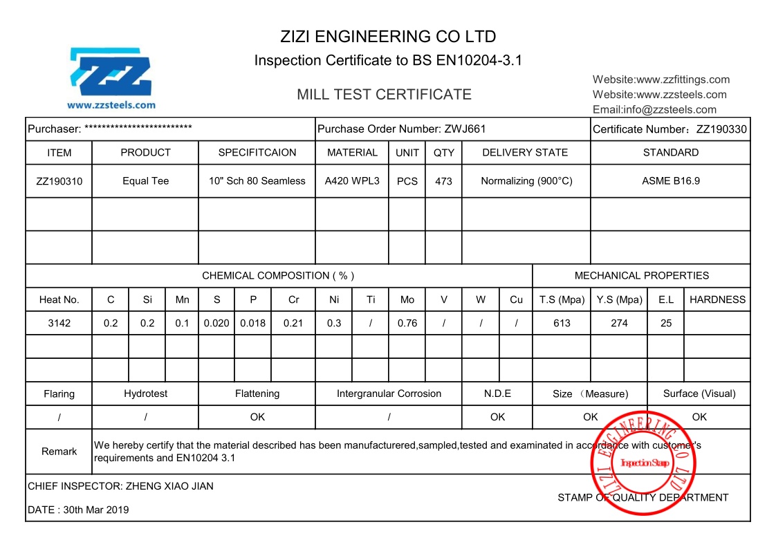 As a Buttweld Fittings manufacturer and exporter, Zizi produced Seamless 10″ Sch 80 Carbon Steel Equal Tee A420 WPL3 ASME B16.9 and delivered them to Mexico in a short time.