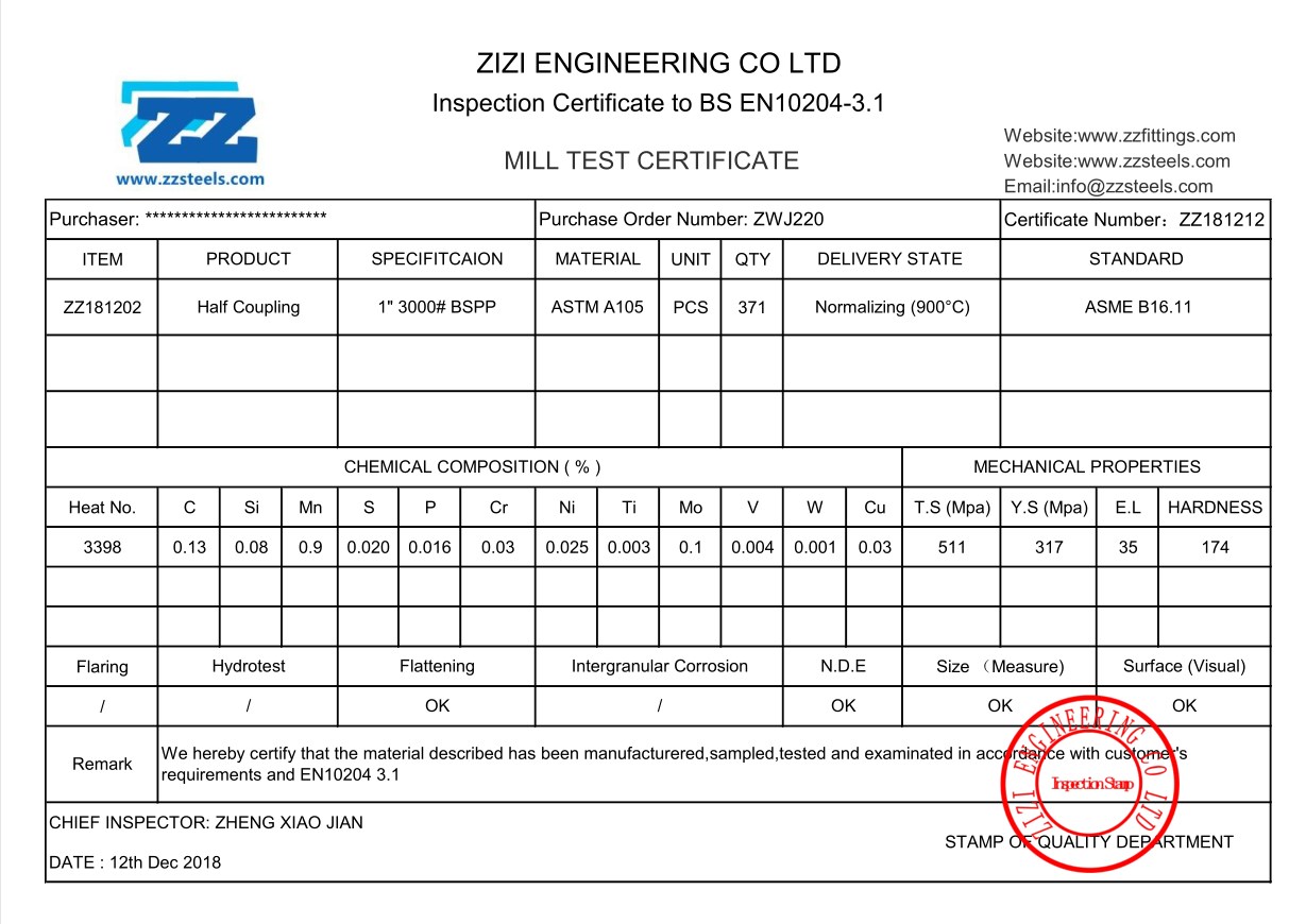 Best quality 1” Class 3000 Half Coupling BSPP ASTM A105 ASME B16.11 exported to South Africa, adequate inventory for ASTM A105 Threaded Fittings in various dimensions.