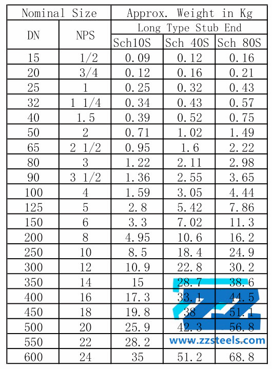 Weight of Long Type Stub End