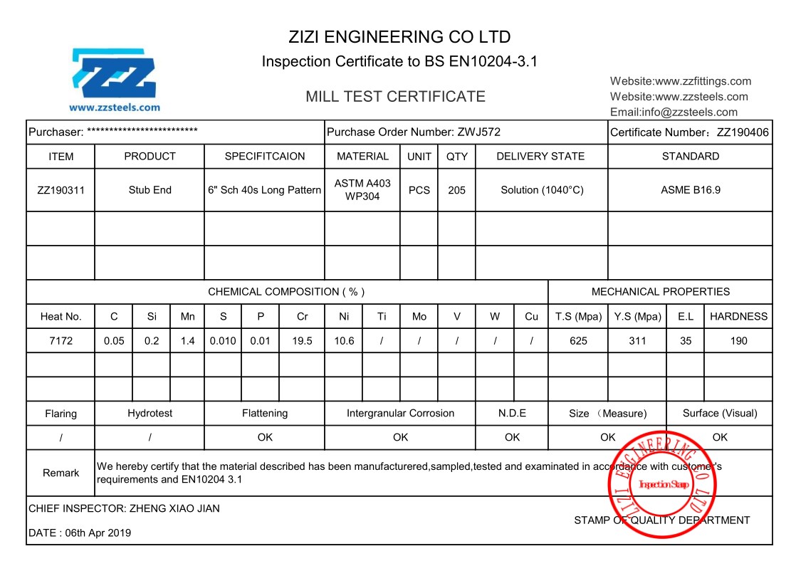 Zizi is an ISO certified manufacturer of wrought fittings, forged pipe fittings and flanges, our products are high quality and durable, they all qualified and supplied with mill test certificates.